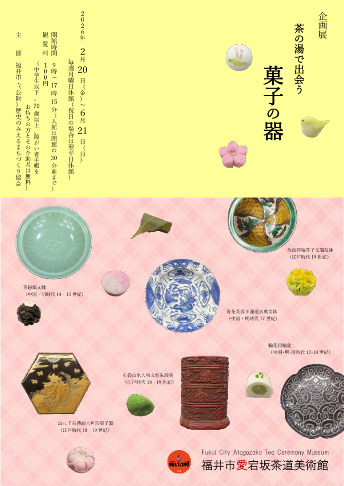 会場では美しい菓子器のほか、和菓子の歴史や和菓子の神様を祀る菓祖神社のことなどもご紹介しています。